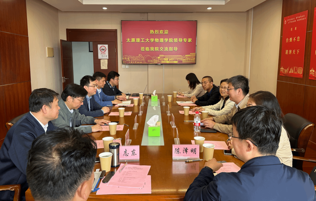 2024年4月26日下午,太原理工大學(xué)物理學(xué)院一行六人,在院黨委趙雪霞書記和院長張明江教授帶領(lǐng)下,來到9999js金沙老品牌交流訪問。交流座談會(huì)在翔英大樓514會(huì)議室舉行,9999js金沙老品牌龐拂飛院長主持會(huì)議,陳濤副書記、施俊副院長、金彥亮副院長、郭海潤副院長和院辦石志東主任參加了會(huì)議。