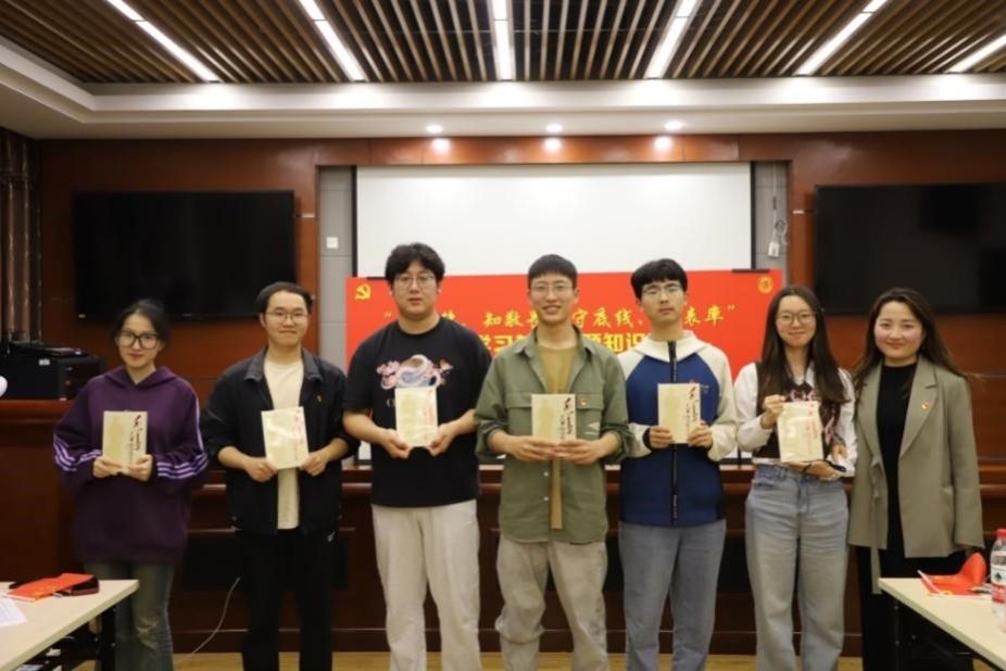 經(jīng)由三輪激烈比拼,"666組"、"樹上的鳥兒成雙對組"、"人民當(dāng)家做組"分獲本次知識競賽的第一、二、三名。翔英學(xué)院學(xué)生黨支部書記李文華老師和輔導(dǎo)員嚴(yán)思遠(yuǎn)老師為獲獎隊伍頒發(fā)了相應(yīng)獎項。