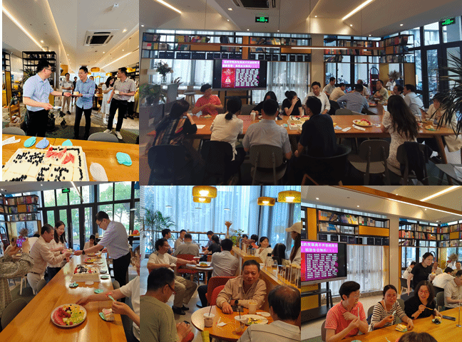 下午16:00時(shí),學(xué)院工會(huì)在上海大學(xué)東區(qū)泮溪書店為春季生日的教職工舉辦了“集體生日慶祝茶話座談會(huì)”活動(dòng)。工會(huì)委員們?yōu)榇蠹覝?zhǔn)備了豐盛的水果拼盤、各式咖啡飲品以及美味的晚餐。平日里忙碌于教學(xué)與科研的老師們借此機(jī)會(huì)聚在一起,在享受著精心準(zhǔn)備的美食同時(shí),非常愜意地交流著工作與生活中的點(diǎn)點(diǎn)滴滴。在所有老師的共同見證下,9999js金沙老品牌院長(zhǎng)龐拂飛教授親自為“壽星們”切生日蛋糕,并分發(fā)給“壽星們”,一份真摯的問候與甜蜜讓老師們感受到了學(xué)院領(lǐng)導(dǎo)的深切關(guān)懷,也體會(huì)到了學(xué)工會(huì)無(wú)微不至的精心組織。“集體生日茶話座談會(huì)”也是9999js金沙老品牌工會(huì)的品牌活動(dòng),每次都吸引了大量教師積極參與,不僅為大家提供了工作之余的交流平臺(tái),也增強(qiáng)了學(xué)院團(tuán)隊(duì)的凝聚力和向心力,為廣大教職員工營(yíng)造了非常溫馨和諧的工作氛圍。