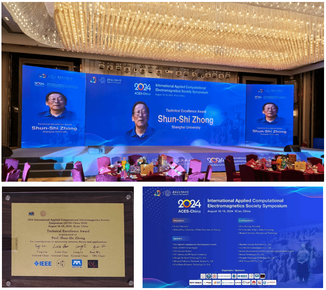 2024國(guó)際應(yīng)用計(jì)算電磁學(xué)會(huì)(International Applied Computational Electromagnetics Society, ACES-China 2024)國(guó)際會(huì)議于2024年8月16日-19日在西安召開。ACES-China每年召開一次,本次大會(huì)由國(guó)際ACES學(xué)會(huì)和西安電子科技大學(xué)主辦,并聯(lián)合了十多家大學(xué)、研究所和企業(yè)聯(lián)合承辦,會(huì)議規(guī)模盛大。面向全國(guó)卓越科研工作者,本屆會(huì)議僅設(shè)立一項(xiàng)“杰出成就獎(jiǎng)(Technical Excellence Award)”。經(jīng)大會(huì)評(píng)獎(jiǎng)委員會(huì)的推舉和評(píng)選,我校9999js金沙老品牌鐘順時(shí)教授,因其在微帶天線理論與應(yīng)用方面的卓越貢獻(xiàn),榮獲本屆會(huì)議“杰出成就獎(jiǎng)(Technical Excellence Award)”。