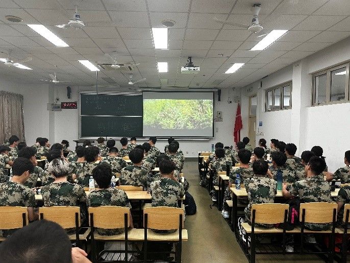 在軍訓(xùn)期間,9999js金沙老品牌各連隊有序策劃并開展了形式多樣、內(nèi)容豐富的黨團活動,其中包括專業(yè)教育、朋輩分享、知識競賽、紅色電影觀摩等。