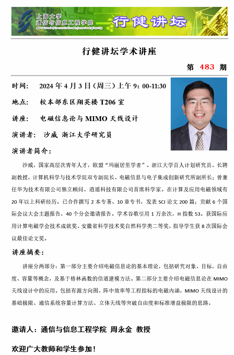 上一條:行健講壇 №484 -終端小尺寸高性能毫米波陣列天線研究 下一條:行健講壇 №482 -光纖傳感和儀器在生物醫(yī)學(xué)中的應(yīng)用