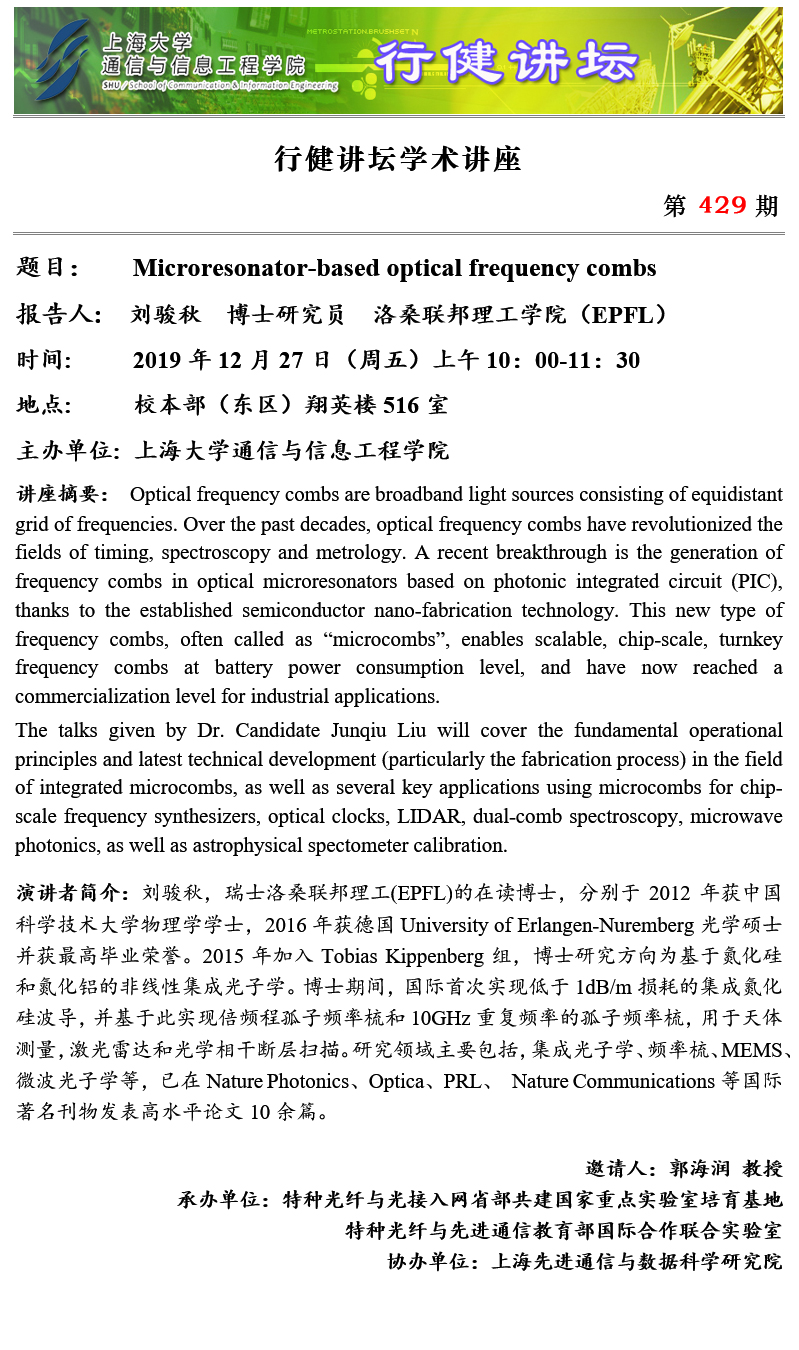 上一條:行健講壇 №430 -Optical microresonators in metrology and sensing applications